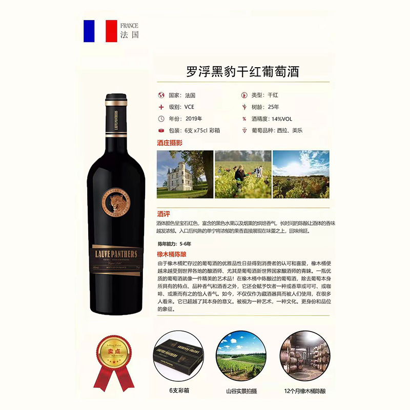罗浮黑豹干红葡萄酒,14度,750mlx6