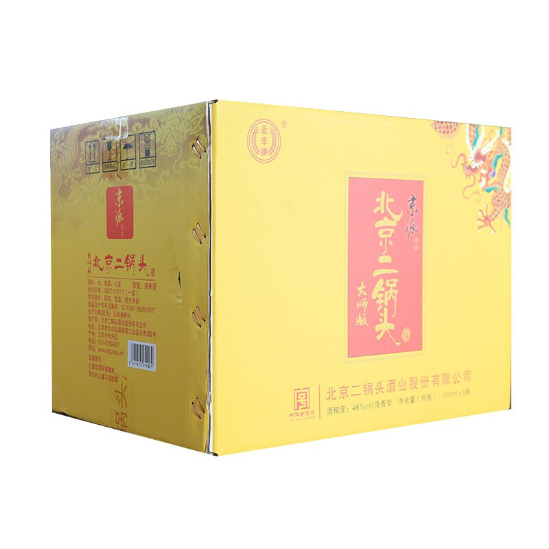 永丰牌北京二锅头白酒京派淳和大师版纯粮清香型500ml*6瓶 整箱装 46度至尊黄龙