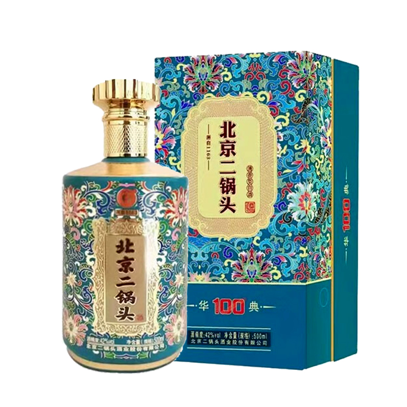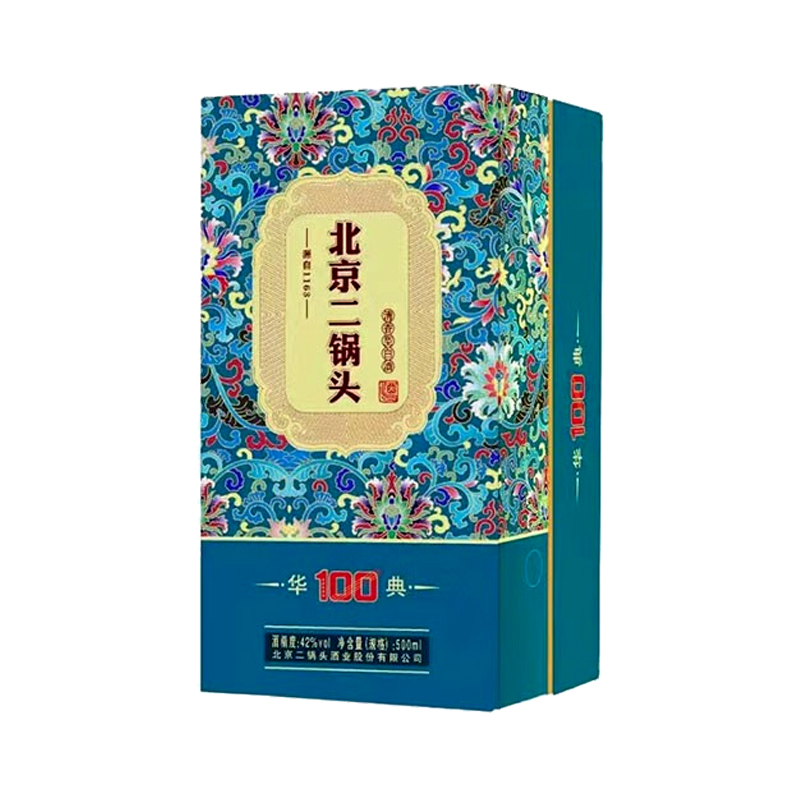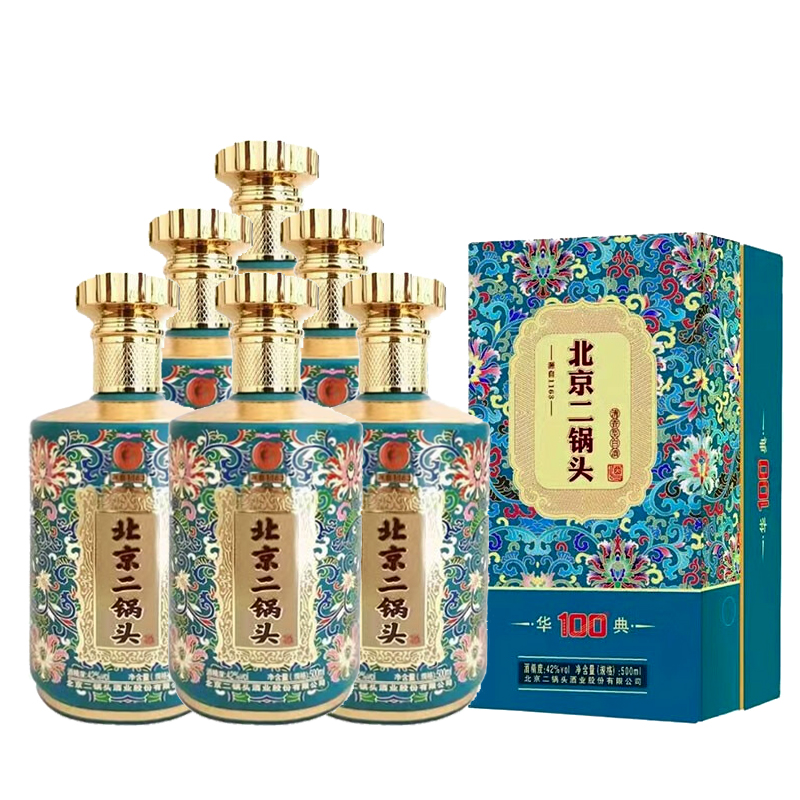 永丰二锅头 华典100 纯粮酒水粮食 42度清香型白酒 蓝色礼盒系列 500ml*6瓶 整箱装