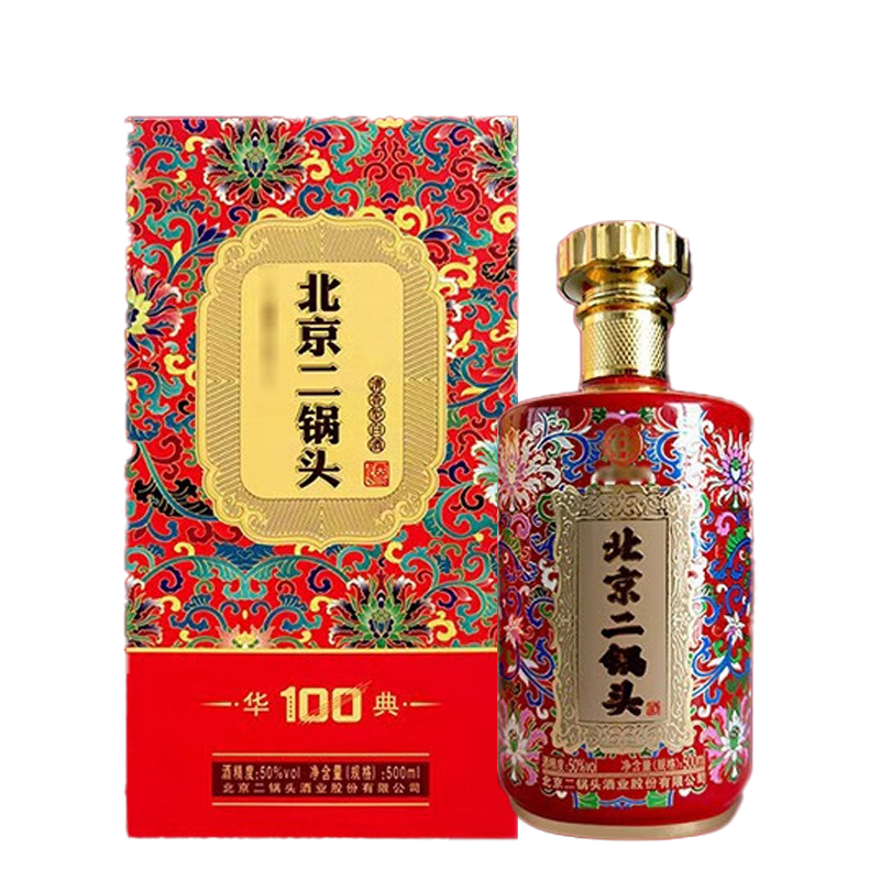 永丰二锅头 华典100 纯粮酒水粮食 50度清香型白酒 红色礼盒系列 500ml*6瓶 整箱装