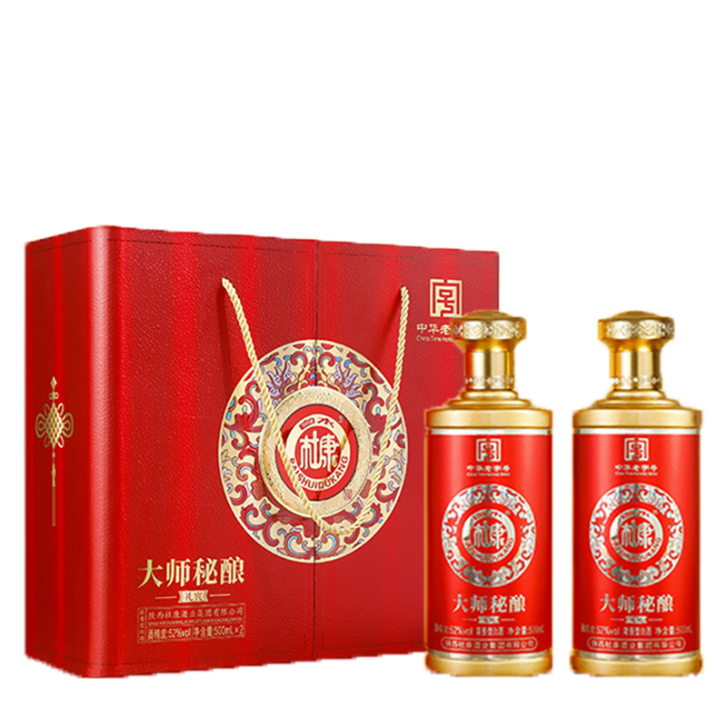 白水杜康 大师秘酿 礼宾礼盒 52度 浓香型白酒 500ml*2瓶*4盒 整箱