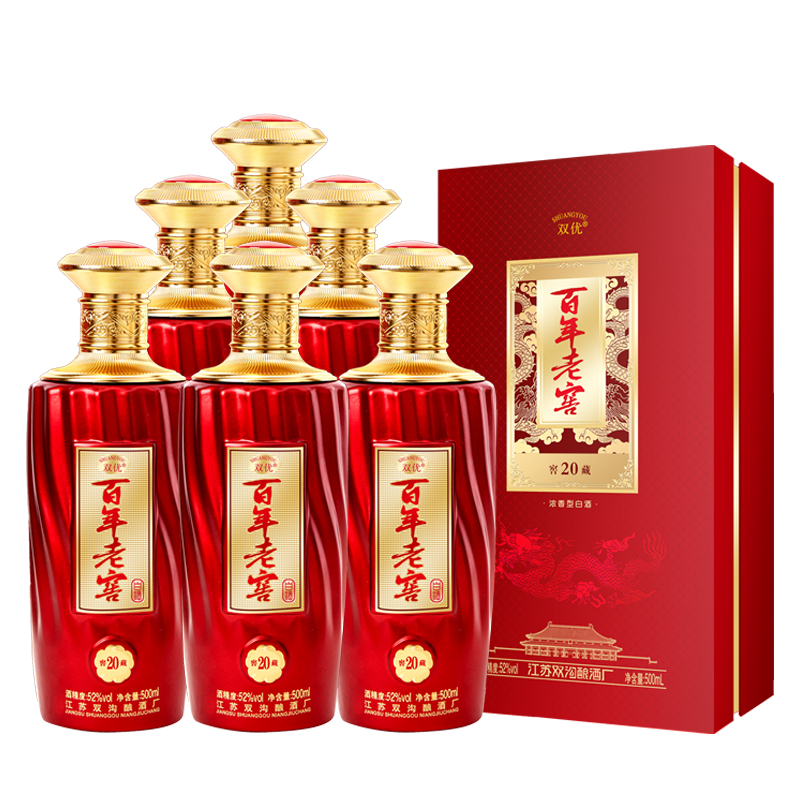 双沟百年老窖 52度 浓香型白酒 500ml*6瓶 整箱