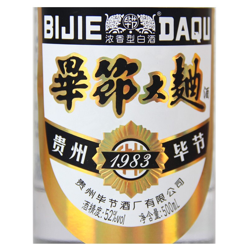 毕节大曲1983黑标白酒 贵州老八大酒 整箱浓香型52度黔派浓香纯粮食酒 500ml*6瓶整箱装