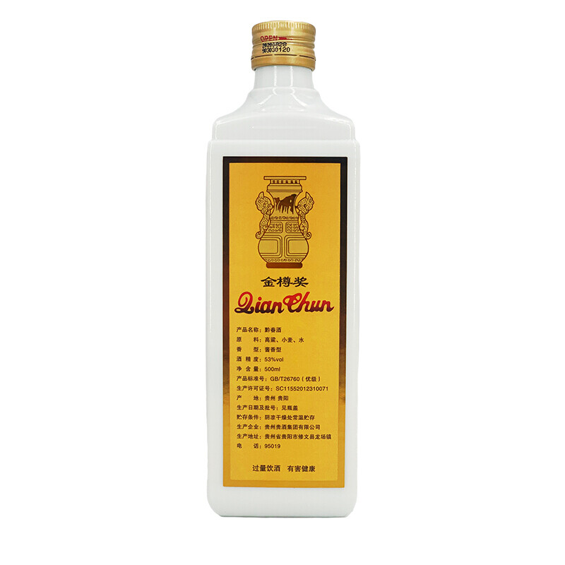 黔春酒 1983黄盒方瓶 酱香型白酒 53度 500ml*6瓶 整箱装
