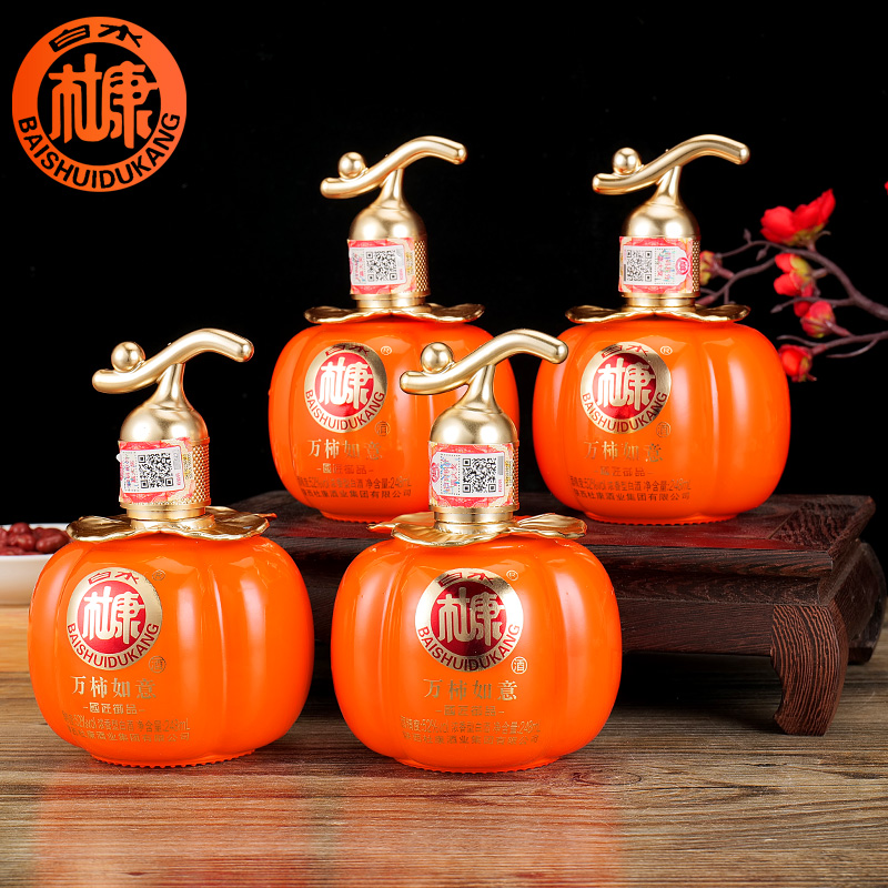 白水杜康 万柿如意 52度 浓香型白酒 248ml*4瓶*3盒 整箱