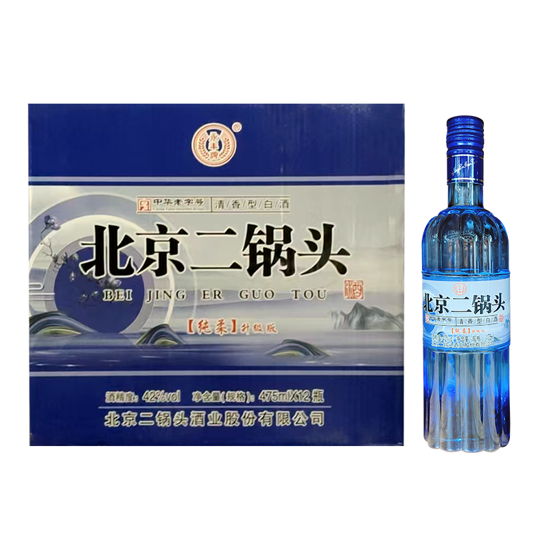 永丰北京二锅头 纯柔 42度 清香型白酒 475ml*12瓶 整箱