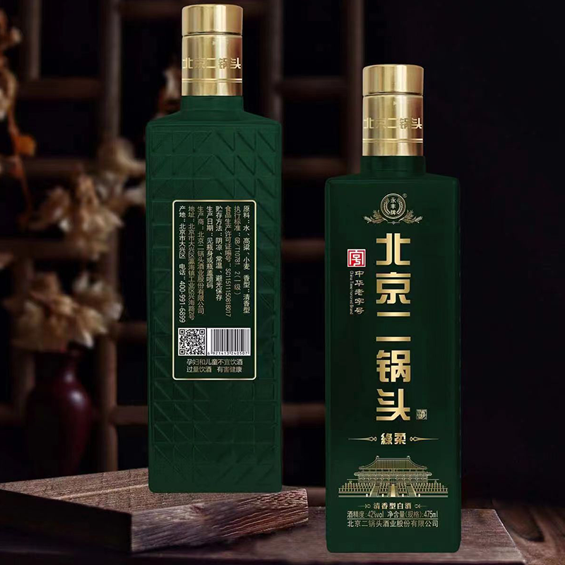 永丰北京二锅头 绿柔 42度 清香型白酒 纯粮酿造 475ml*12瓶 整箱
