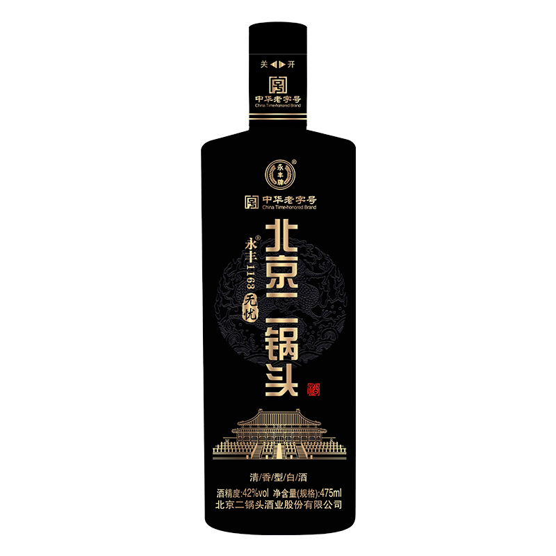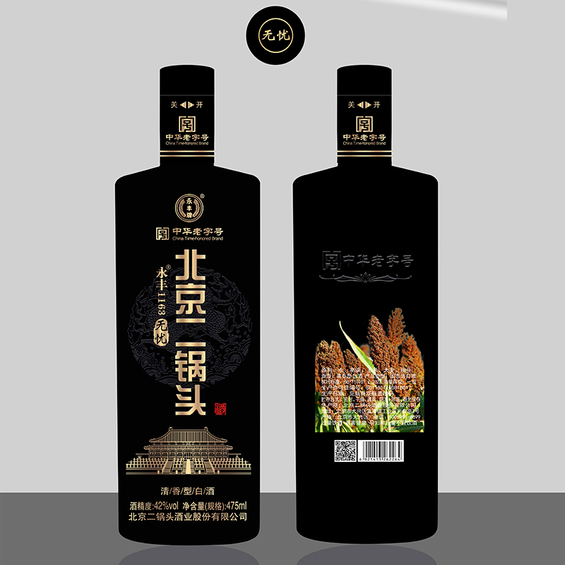 永丰二锅头无忧(黑)42度 新老款随机发货 清香型白酒 纯粮酿造 475ml*12瓶 整箱
