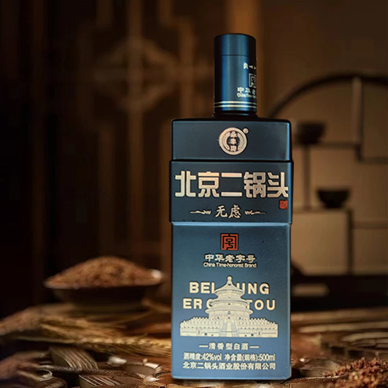 永丰二锅头无虑(黑)42度 清香型白酒 纯粮酿造 500ml*12瓶 整箱