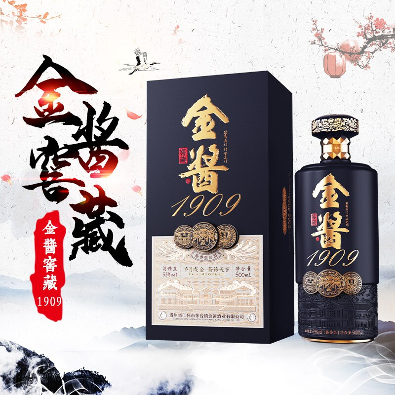贵州茅台镇 金酱1909酒 53度酱香型白酒 送礼用酒 500ml*6瓶 整箱