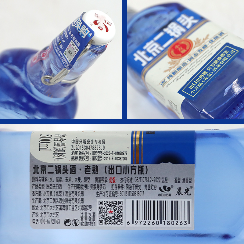 北京二锅头 小方瓶蓝方 42度 清香型白酒 纯粮酿造 500ml*12瓶 整箱 不兑奖
