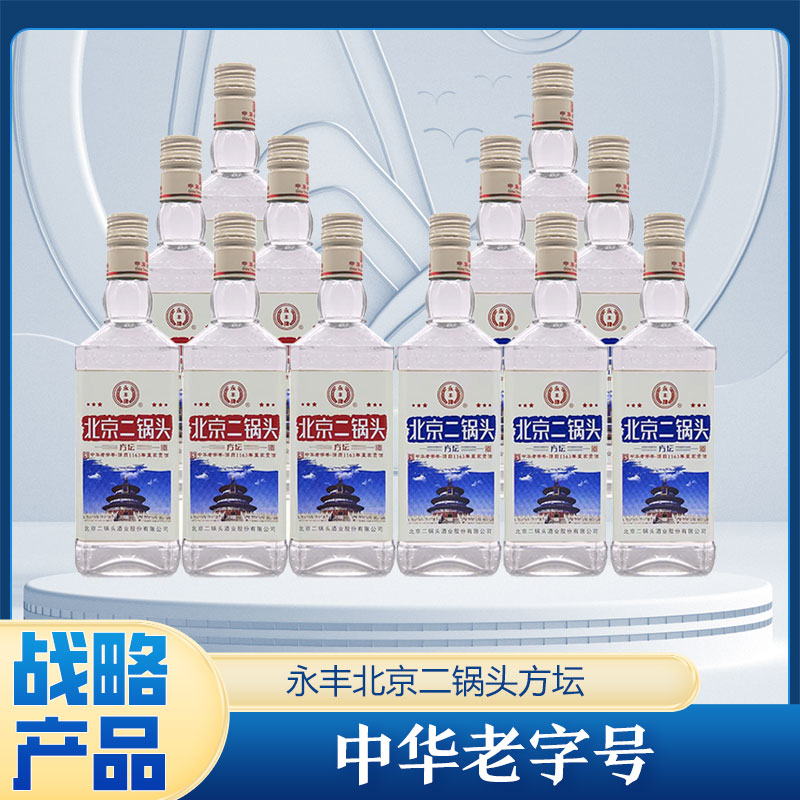 中华老字号 永丰北京二锅头 方坛 42度 清香型白酒 纯粮酿造口粮酒 500ml*12瓶 整箱