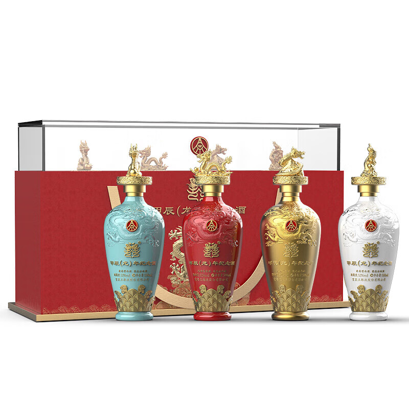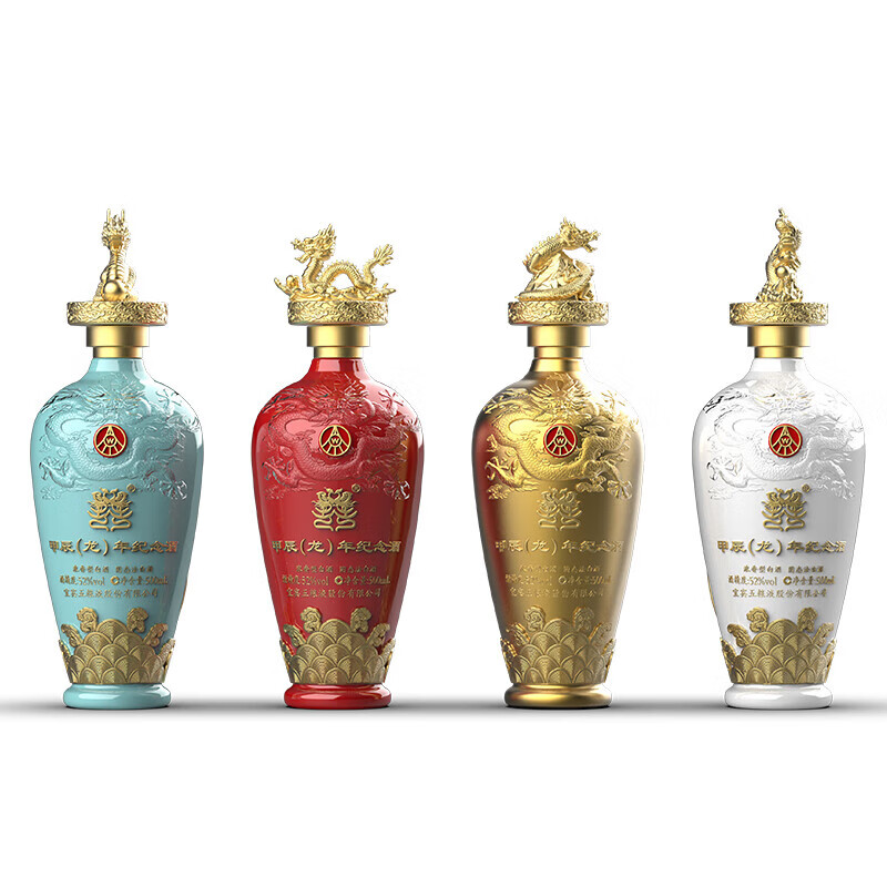 五粮液(WULIANGYE)五粮浓香 囍·甲辰龙年 生肖纪念酒 52度 浓香型白酒年货送礼 500mL*4瓶 四支礼盒装