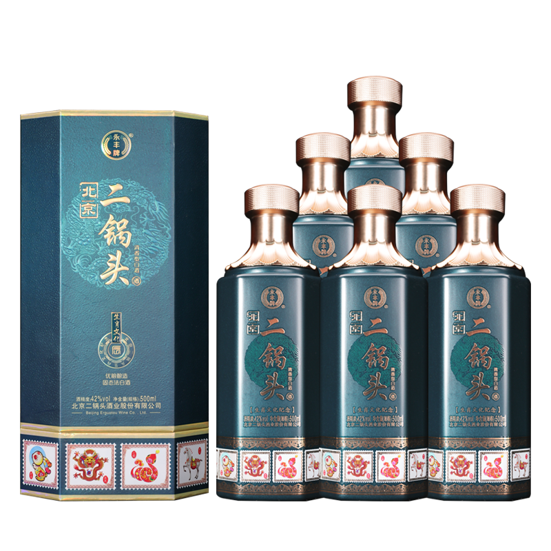 永丰牌北京二锅头 生肖文化纪念 蓝装 42度 清香型白酒 纯粮固态发酵 500ml*6瓶 整箱