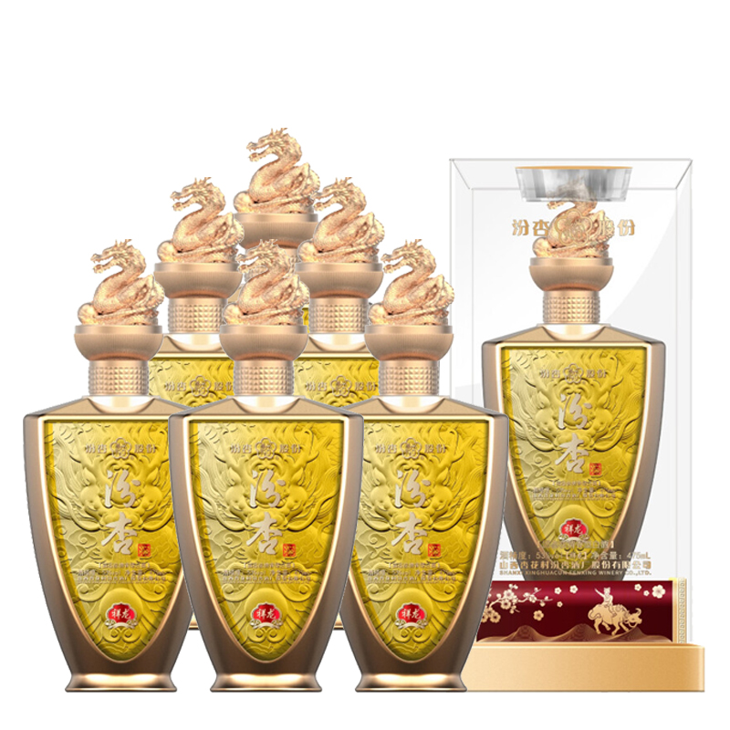 山西杏花村 汾杏酒 祥龙 53度 清香型白酒 宴请宋柳自饮 475ml*6瓶 整箱