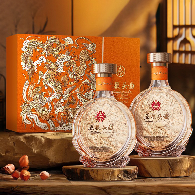 五粮液 五粮头曲 五灵祥瑞礼盒 浓香型白酒 52度 500mL*2瓶 礼盒装