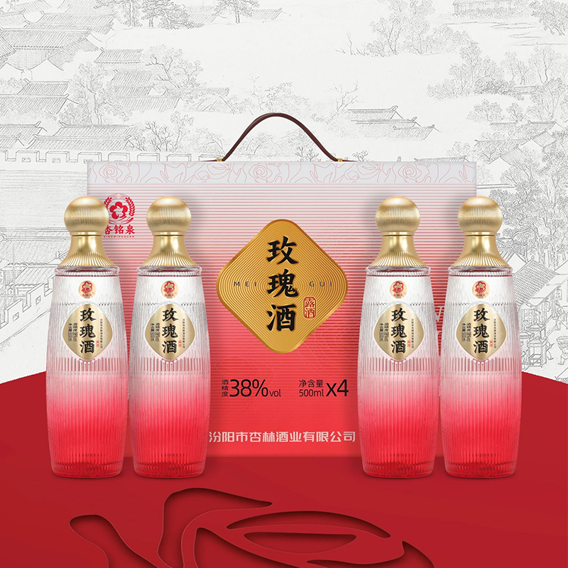 山西杏花村 杏铭泉 玫瑰酒礼盒版 清香型白酒 38度 500ml*4瓶*3盒 整箱