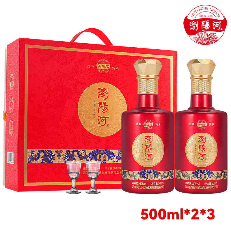 浏阳河 梦仙缘90 52度 浓香型白酒 匠心匠造 纯粮浓香 500ml*2瓶*3盒 整箱