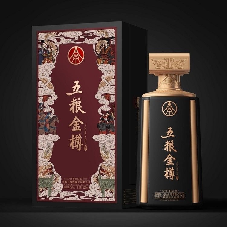 五粮液股份出品 五粮金樽黑冠 52度 浓香型纯粮白酒 喜酒商务宴请送礼 52度 500mL*4瓶 整箱装