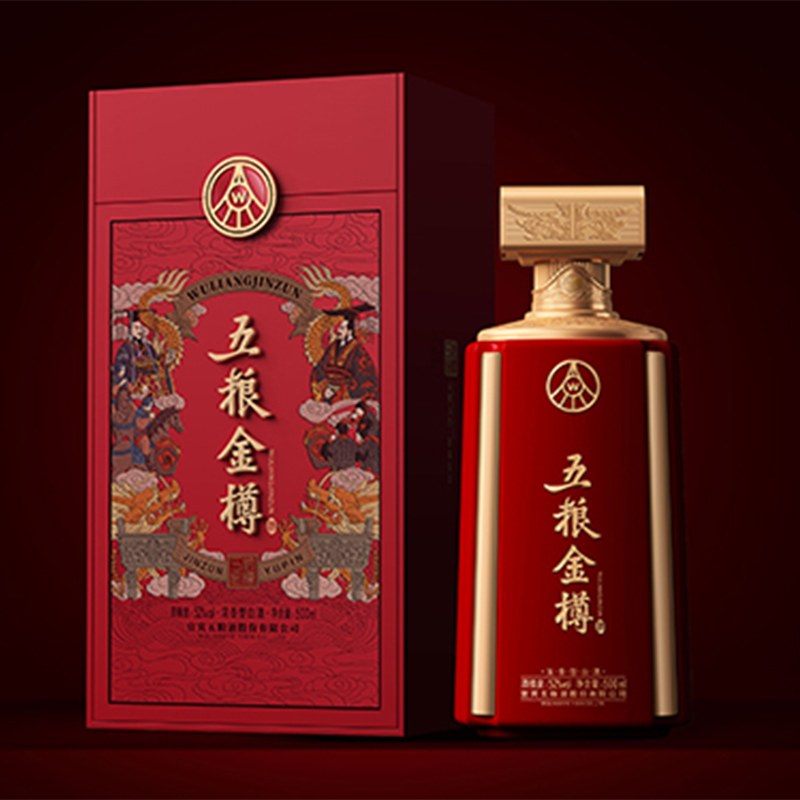 五粮液股份出品 五粮金樽红冠 52度 浓香型纯粮白酒 喜酒送礼 商务宴 500mL*4瓶 整箱装