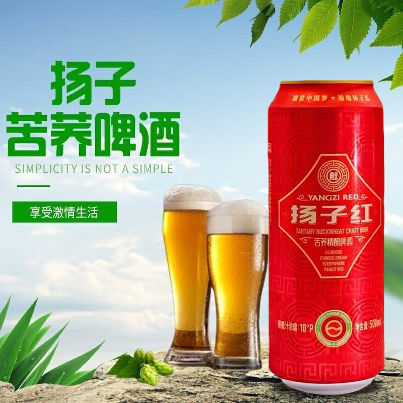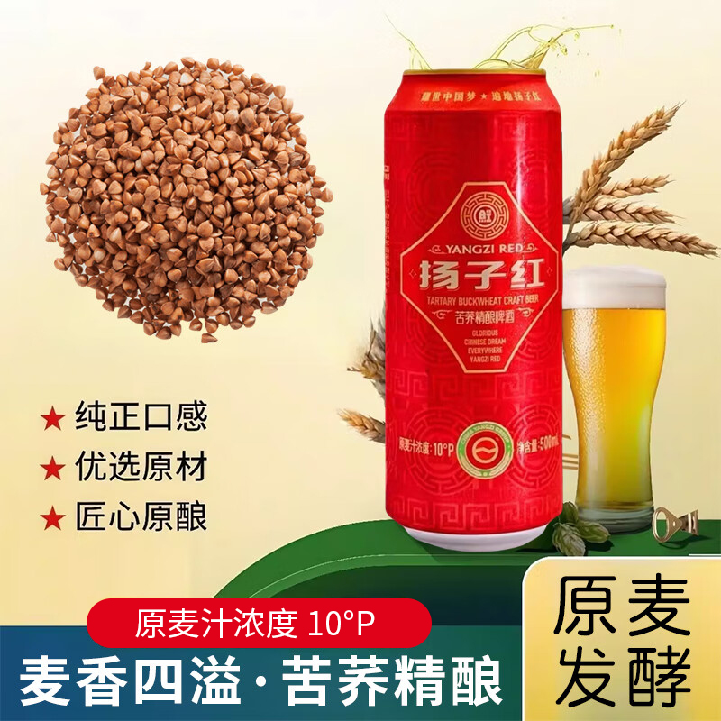 扬子红 苦荞精酿啤酒 原麦汁浓度10°P 酒精度≥3.3%vol 500ML*12罐 整箱装 50箱起拍-批量出厂价专用链接不含运费-根据配送距离详细物流运费咨询客服后确定下单有效