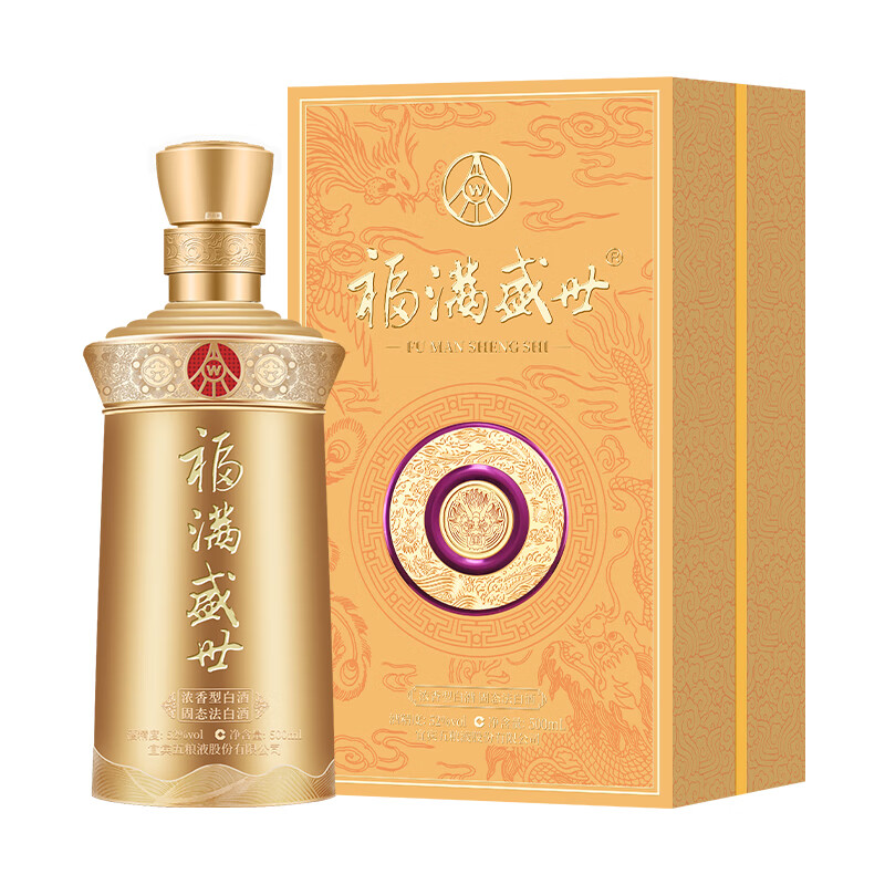 五粮液总厂 福满盛世酒 金樽福 52度 浓香型白酒 宴请 500ml*6瓶 整箱装