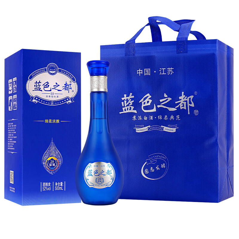 蓝色之都酒 窖藏20 浓香型白酒 绵柔淡雅 纯粮浓香 500ml*6瓶 整箱