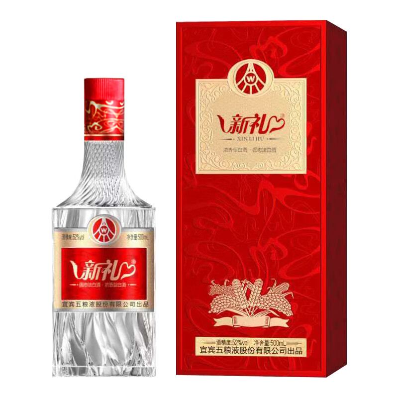 五粮液股份 新礼 52度 浓香型白酒 商务宴请 自饮送礼 500ml*6瓶 整箱