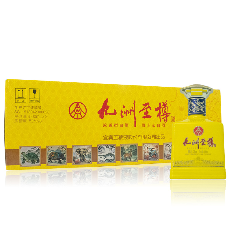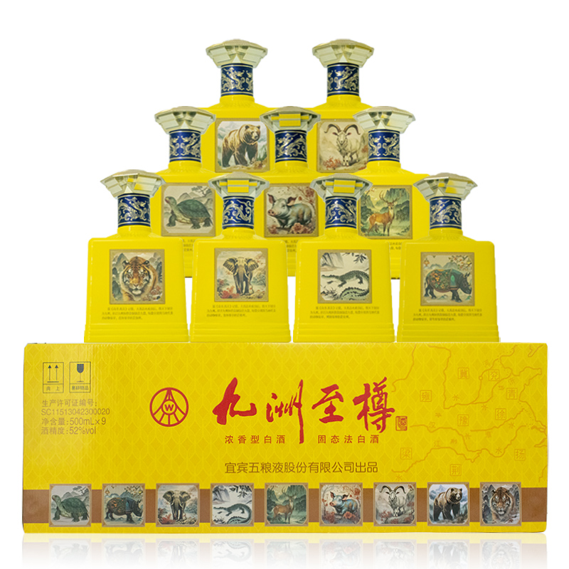 五粮液股份出品 九洲至樽 52度 浓香型白酒 收藏 送礼 500ml*9瓶 整箱装