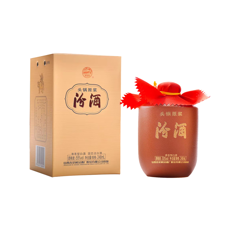 汾酒 杏花村头锅原浆 55度 清香型粮食酒 收藏送礼 248mL*12盒 整箱
